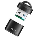 ミニUSBカードリーダーは小型でアルミ合金製。スピーカーやノートPCに便利なカードスロットを装備。高速USB2.0対応で、メモリーカードアダプターとしても使用可能。
