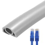 コードカバーフロアは床配線用の難燃性プラスチック製で、自己粘着タイプ。電源コードやLANケーブルをスッキリ隠し、誤って踏まれたりするのを防ぎます。