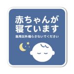 赤ちゃんが寝ていますシール(ブルー)は、かわいらしいデザインでお子様の安全を守ります。寝かしつけ中の赤ちゃんにぴったりなアイテムです。チークやカラフルな色合いが特徴で、部屋の雰囲気を和ませます。