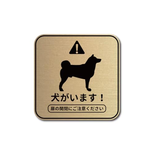 犬がいます 柴犬 正方形 プレート調 マグネットタイプ/シールタイプ (ゴールド(シールタイプ)) 高価買取中