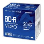 BD-Rブルーレイディスク、6倍速で映像用デジタル放送に対応。インクジェットプリンタ対応で、20枚入りの5mmスリムケース付き。高品質な映像保存に最適。