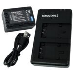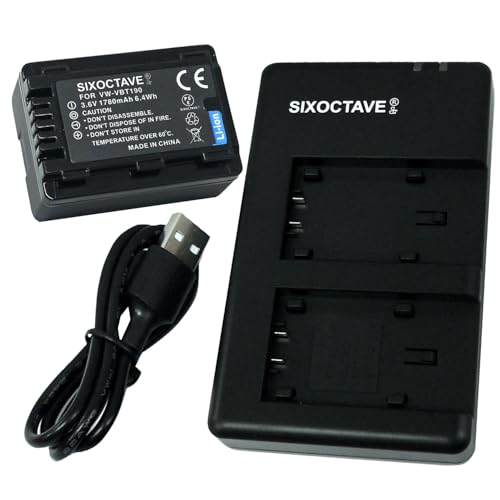 SIXOCTAVEのパナソニック互換バッテリーVW-VBT190およびデュアル充電器VW-BC10-Kのセット。多くのHCシリーズカメラ(HC-V210M〜HC-W850M等)に対応。
