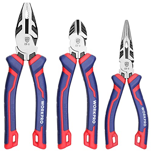 WORKPROのペンチセットは、強力ペンチ、ラジオペンチ、斜めカットプライヤーの3本が含まれ、家庭工事や自動車修理、鋼線切断に最適です。耐久性に優れたデザインで使いやすいです。