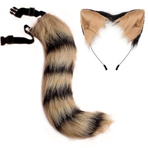 [OLYOLY] 2点セット かわいい しっぽ コスプレ クリスマス パーティー グッズ 仮装 三毛猫 トラ しましま キャット 狐 猫 犬 尻尾 狐耳 犬耳 つけ耳 柴 狼 狸 猫耳 アニマル 動物 メイド (09 キャメル×黒縞)