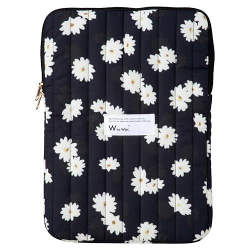 Wpc. パターンキルティングPCケース(M)は、フローティングデイジーブラックのデザインで、はっ水機能付き。サイズは縦型で、通勤や通学、出張にも最適な女性向けの可愛いおしゃれなパソコンケースです。
