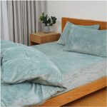 Zhiyuan リバーシブルしわテクスチャ布団カバーベッドシーツ枕カバーセット、シングル、ペールイエロー