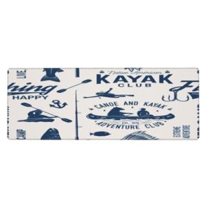 大型ゲーミングマウスパッド 30x80cm、滑り止めゴムベース、防水耐久性デスクマット、オフィス、自宅、サイバーカフェ用、滑らかな表面のXXL拡張キーボードパッド(11.8×31.5インチ)(カヌーカヤックと釣りクラブ、スタンプバッジTシャツヴィンテージ)