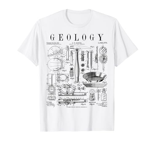 地質学者に最適なフィールドキットツール、ヴィンテージ特許プリントTシャツ。丈夫でスタイリッシュ、地質学の愛好者にぴったりの逸品です。