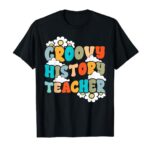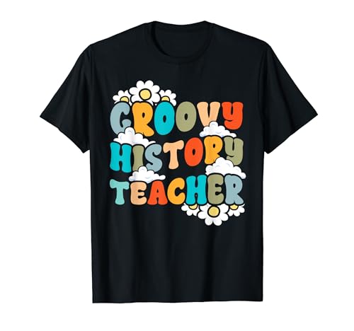 グルーヴィーな歴史をテーマにしたティーチャーズ・デーのTシャツ。社会科の授業を楽しむデザインが特徴で、バック・トゥ・スクールにぴったりのアイテム。おしゃれでユニークな一枚です。