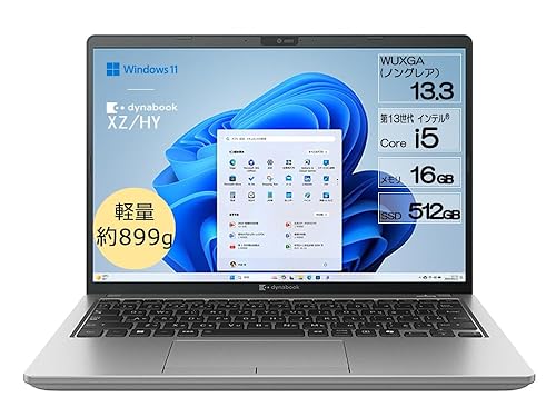 dynabook XZ/HYは13.3型のノートパソコンで、第13世代Core i5搭載。キーストローク2.0mmのキーボード、Copilotキー、SSDを搭載し、Windows 11 Homeを搭載。色はダークテックシルバーです。