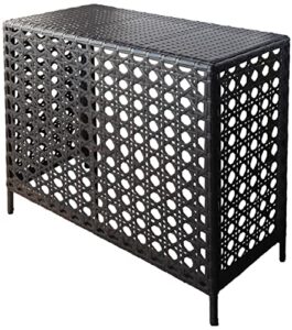 ステンレス製のエアコン室外機カバー。日除けや防水、防日光、防雪、防風機能を備え、機器を保護します。サイズは88x38x20cmで、緑化も可能。