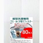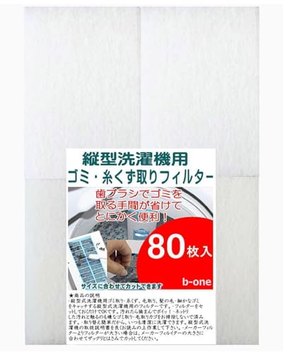 ビーワンショップの縦型洗濯機用ゴミ取り糸くずフィルターは、サイズ約9.6cm×16cmで80枚入っています。手軽に使用でき、洗濯時の糸くずやゴミをしっかりキャッチします。