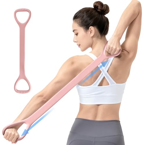 ストレッチチューブは超高弾性で滑り止め機能付き。肩や肩甲骨のエクササイズに最適で、猫背や肩こり防止に役立ちます。自宅でのダイエットやシェイプアップに最適なピンクのトレーニングバンドです。