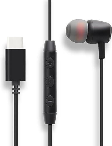 USB-C 片耳イヤホン、カナル型で寝ながら使用可能。シリコンイヤーピース付き、リモコンで音量調整、マイク内蔵でハンズフリー通話も対応。リモートワークやテレワークに最適。カラーはブラック。
