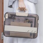 A4サイズの透明なファイルケース。持ち運び便利でおしゃれなデザイン。防水・丈夫なプラスチック製で、大容量。ハスプ付きで書類整理や小物収納に最適。オフィスや通勤、通学にぴったり。