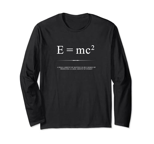 この長袖Tシャツは、エネルギー質量方程式にインスパイアされたデザイン。柔らかく快適な素材で、ユニセックスサイズ展開。科学好きにぴったりのアイテムです。
