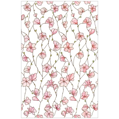 Dream Stickerの水貼りステンドグラス風ガラスフィルム、62×95cm。外から見えずUVカット、断熱・遮光・遮熱機能。結露や飛散防止にも対応。賃貸でも安心、柄合わせ可能。チェリーブロッサムデザインでおしゃれな窓に。