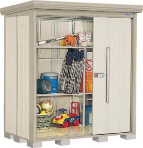 BTMの屋外スチール物置は、大型の防さび・防水設計でおしゃれな外観。可動棚付きで収納力抜群。ベランダや庭に最適な引戸タイプ。