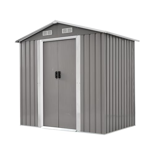 物置 屋外 大型 1897L ブラック ホワイト 三角棚付き 補強フレーム スチール製 防水 耐候 鍵付き 両開きドア 庭 田畑 ガーデニング収納 大容量 床なしタイプ
