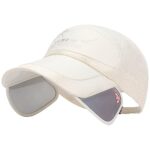 ホワイトファングの釣り柄ロゴがデザインされたつば長メッシュキャップ。ライトベージュ色で、アウトドアやゴルフに最適。男女兼用で、快適なフィット感を提供。CA804モデル。
