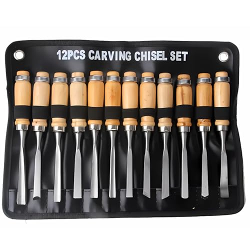 PLEAVIT 彫刻刀 セット 木工 木彫り ノミ ポーチ付き 初心者 プロ 木工工具 12本セット