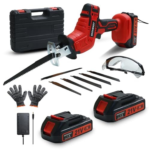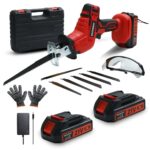 レシプロソー 電動ノコギリは、2個のバッテリー付きで無段変速が可能。家庭用に適した小型軽量設計の充電式電動カッター。多用途に使える便利なツールです。