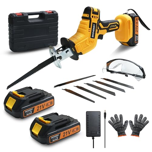 YELLOW-Bの電動レシプロソーは、2個のバッテリー付きで無段変速機能を搭載した小型軽量設計の家庭用電動工具です。一台で多役に対応できる便利なカッターです。