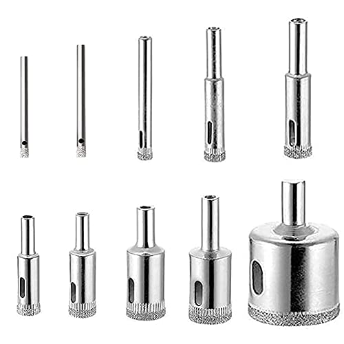 10本組のダイヤモンドホールソーは、ガラスやタイルの穴あけ加工に最適です。超硬素材で耐久性があり、4mmから28mmまでのサイズを揃えており、精密な切削・研削が可能な工具です。