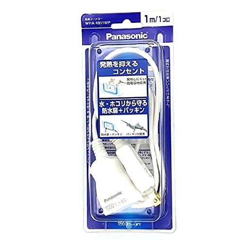 パナソニック 延長コードXは、安全設計の扉・パッキン付きコンセントを備え、スナップキャップが付属。1mコードで、室内の電源を便利に拡張します。カラーはホワイトで、家庭やオフィスに最適です。