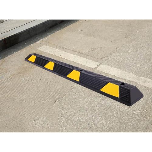 駐車カーストッパーは、165cm、183cm、200cmの特ロングタイプで、耐候性のゴム製。黄色の反射板付きで、取付簡単、衝突防止機能もあり、固定アンカーが付属。サイズは183x16x11cm。