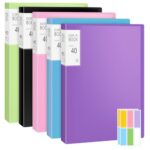 A4ディスプレイフォルダー5個、200ポケットA4ディスプレイブックフォルダー、ステッカー付きプラスチックスリーブディスプレイブックドキュメントプレゼンテーションフォルダー、プロジェクトフォルダー、学校、ホームオフィス用 – 5色40ポケット