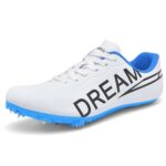 男性向けの女性用トラックフィールドシューズ。スパイク付きで陸上競技に最適。白色、サイズ24.5 cm。ランニング、ジャンプ、スプリントに対応。