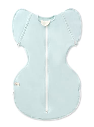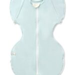 ねくるみ スワドルは新生児用で、足元オープン設計が夜間のオムツ替えを楽にします。腕出し可能で、綿96%の伸縮性ある生地を使用。洗濯機・乾燥機対応で、IHDI認証を取得したM字設計です。