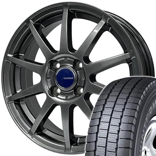 トヨタ サクシード(160系)2014-用のダンロップスタッドレスタイヤセット。155/80R14サイズ、アルミホイールはウイナーズ CF-01(メタリックグレー)、5.0-14、4/100の仕様。