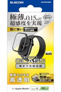 エレコム Apple Watch ガラスフィルム [46mm] Series 10 フルカバー 極薄 貼付治具付 AW-24AFLGS2R