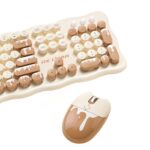TISHLEDのワイヤレスキーボードとマウスコンボは、104キーのメンブレンキーボードと4キー光学式マウスがセット。Win/Mac/PC/ノートパソコン対応、バッテリー付きでアイスクリームデザイン。
