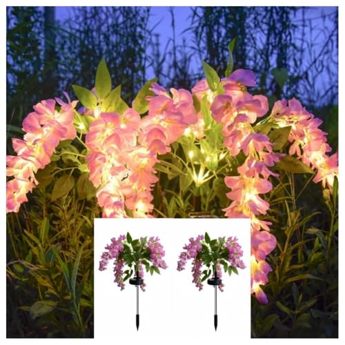 WBLDBB 藤の花ソーラーライト ガーデンライト ソーラーライト 2個セット 暖色 おしゃれ 屋外 ガーデニング IP65防水 埋め込みソーラー ロマンチック雰囲気 自動点灯 消灯 省エネ クリスマス 飾り 庭 歩道 駐車場 に適用 (ピンク色モデル)の製品情報