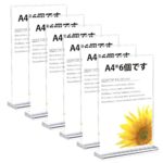 VUDVDのアクリルスタンド(6Pcs)は、A4サイズのカードを両面で表示可能な透明スタンドです。POP広告やプライスカードの展示に最適で、安定した卓上展示ができます。