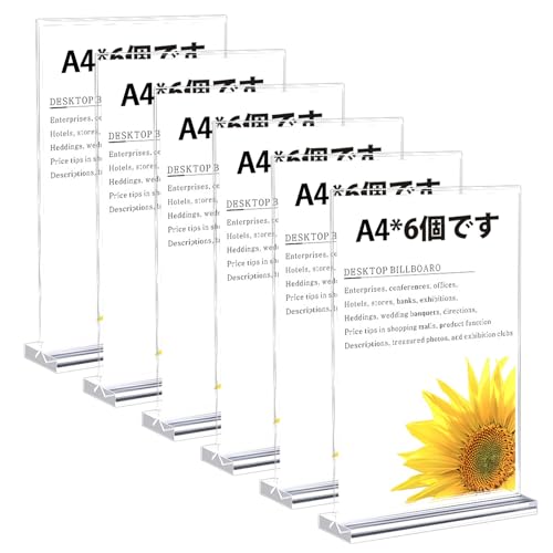 VUDVD 6Pcs アクリルスタンド A4 カードスタンド POP広告スタンド 透明 両面用 プライスカード立て アクリルサインホルダー ポップスタンド 卓上展示 (A4) 高価買取中