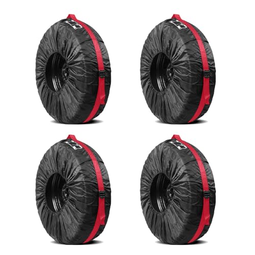 スペアタイヤカバー4枚セット。防水仕様で、SUV、RV、トレーラー、トラックに対応。19〜23インチのタイヤにフィット。耐久性に優れたプロテクターです。