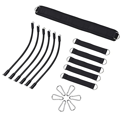 引張り補助ベルトを使ったトレーニング用具。コードやプルダウンバーで引き上げることができ、抵抗バンドとの組み合わせで多様なエクササイズが可能。ジムでの使用に最適なナイロン製、ブラックカラー。