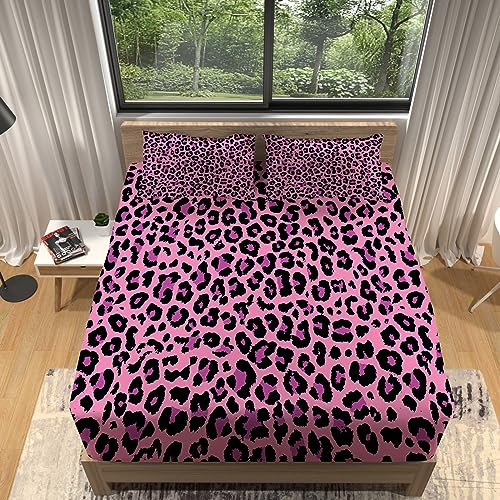 WJYMJJの寝具セット(シングル、100×200cm)は、紫色のヒョウ柄のボックスシーツで、スタイリッシュなデザイン。フィットシーツが子供やティーン、男性の寝室を飾ります。