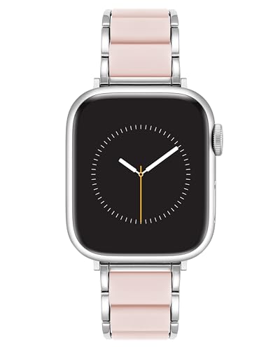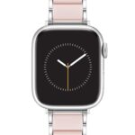 Anne KleinのシリコンファッションブレスレットはApple Watch用で、安全で調節可能。ピンク/シルバーのデザインで、42mm(Series 1-3)および44/45/46/49mm(Ultra & Ultra 2)に対応。