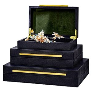 XINSTAR フェイクブラックシャグリーンレザー装飾ボックス 蓋付き装飾収納ボックス 3個セット 収納ボックス ジュエリーオーガナイザー レディースアクセサリーオーガナイザー メンズジュエリーオーガナイザー