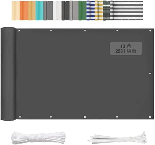 Kimgullのベランダ用目隠しシェードは、50x100cmサイズで、撥水・UVカット機能を備えています。取付簡単な紐・インシュロック付きで、庭やパティオにも最適な濃い灰色のオーニングです。