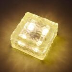 ガーデンマスターのLEDソーラーライトは、10cm角でゴールド色のデザイン。自動点灯スイッチ付きで、IP66防水性能を持ち、庭やベランダ、玄関の照明に最適。防塵防水で安心して使用できます。