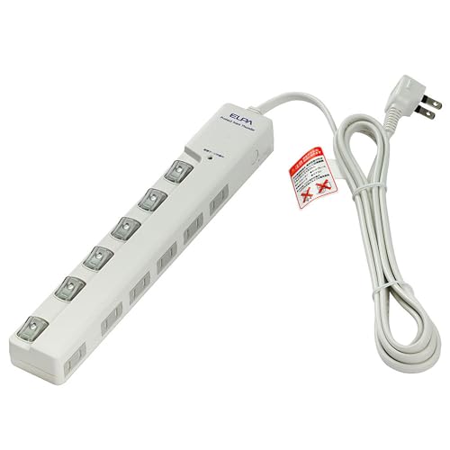 エルパのスイッチ付タップWLS-LY620MB(W)は、雷ガード機能搭載の延長コードです。6個口、長さ2mで、LED表示で電源状態が確認できる横差しデザインが特徴です。