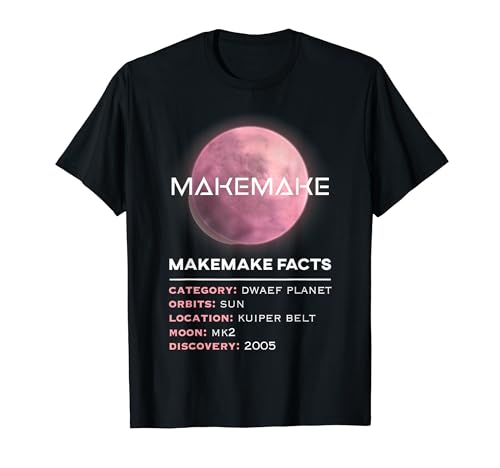Makemakeは、太陽系外縁部にある準惑星で、ハワイの神話に由来します。宇宙天文学愛好家向けにデザインされたTシャツは、これをモチーフにし、ユニークでスタイリッシュなアイテムです。