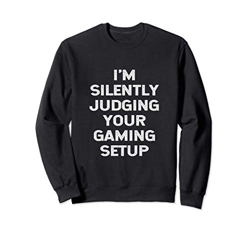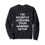 『I’m Silently Judging Your Gaming Setup』は、面白いビデオゲーマー向けのトレーナーで、ユニークなデザインと快適な着心地が特徴です。ゲーミングセッションに最適!
