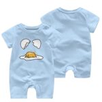 ぐでたまデザインのロンパース。赤ちゃん用の半袖新生児服で、綿100%素材使用。通気性良く柔らかい肌着パジャマ。前開きで着替えやすく、四季兼用、出産祝いにも最適。0-24ヶ月対応。